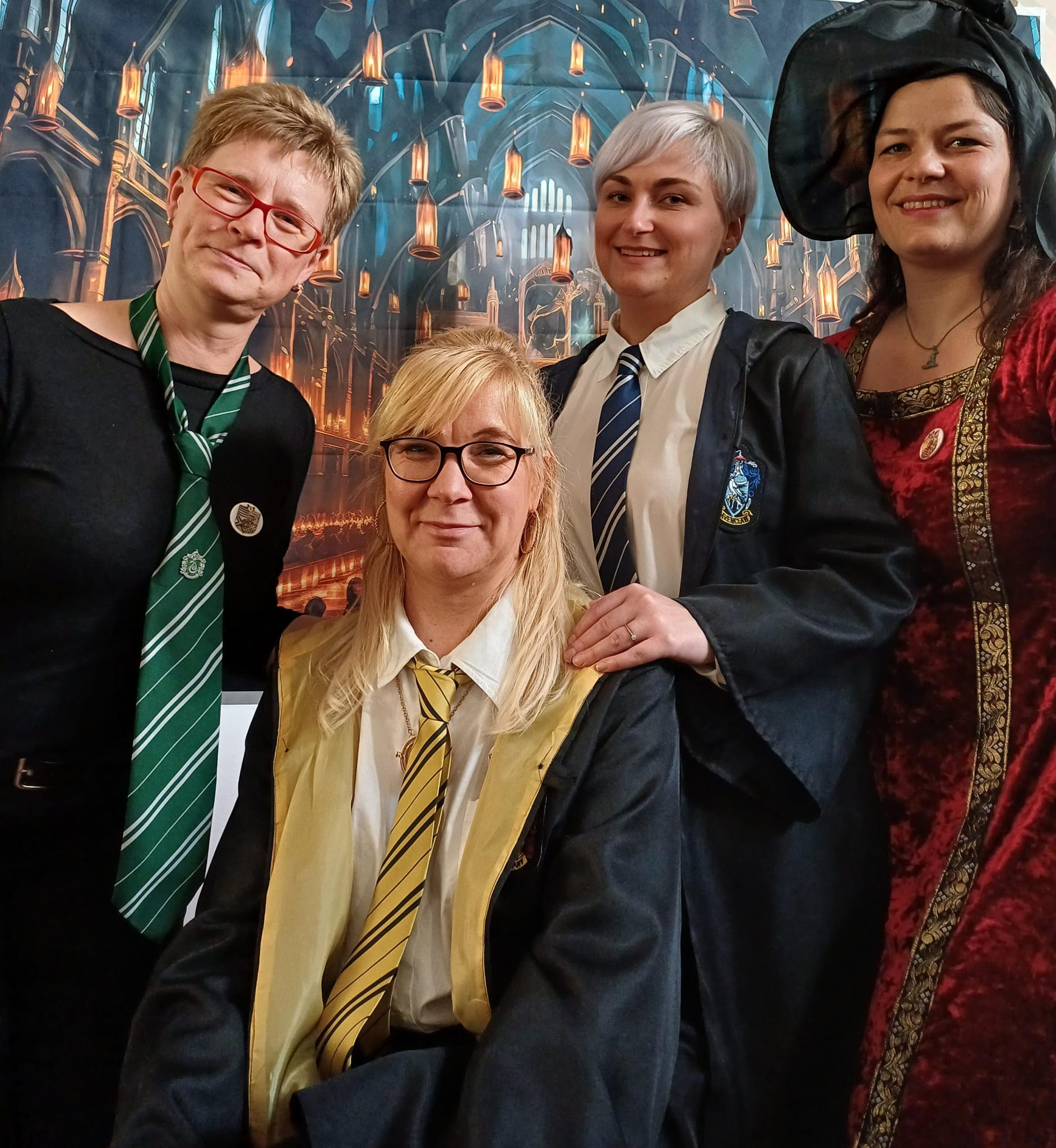 Foto vom Harry-Potter-Tag im Oktober 2024 Personen von links nach rechts: Jacqueline Heidel, Antje Böhm, Alexandra Müller-Berauer, Lisa Lemberg